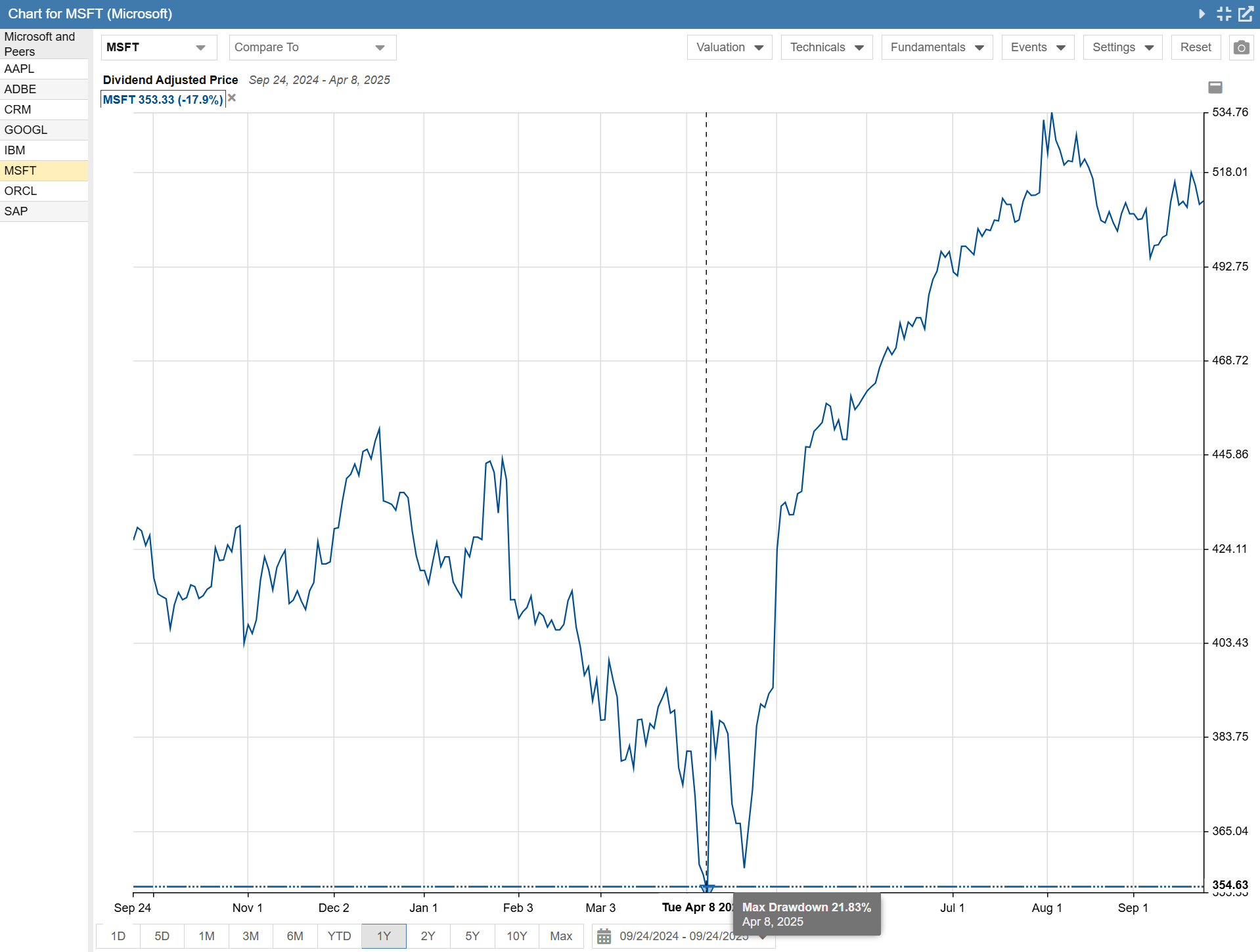 Price Chart Microsoft - Maximum Drawdown 1 Year