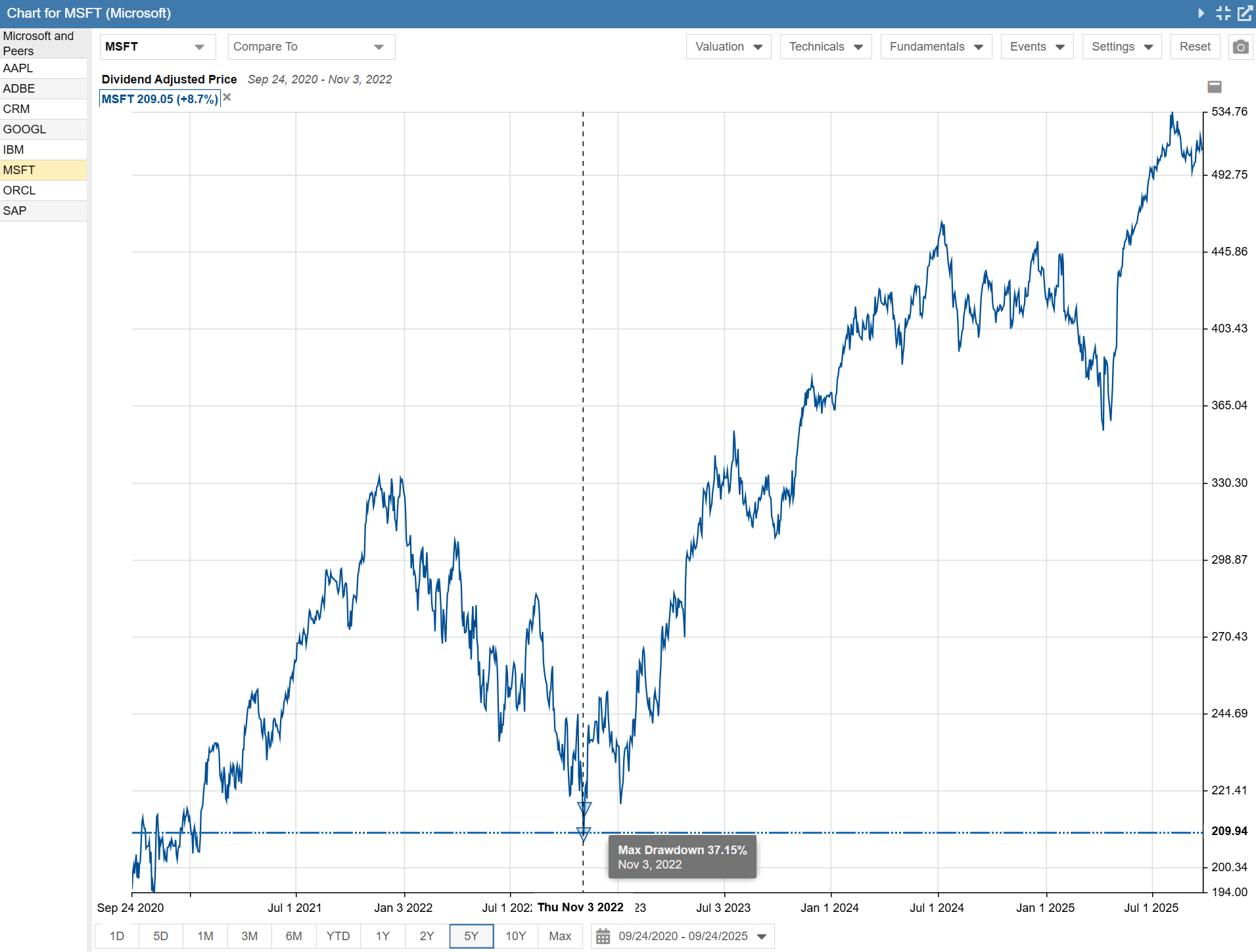 Price Chart Microsoft - Maximum Drawdown 5 Years