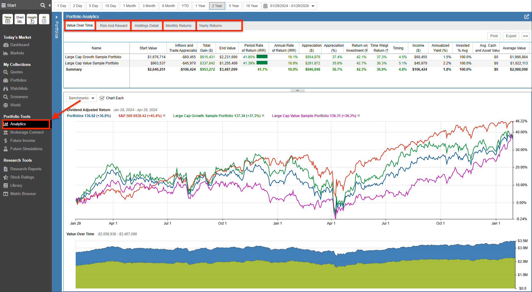 How does Stock Rover Portfolio Analytics compare to standard brokerage reporting? Unlike standard brokerages that often show simple percentage gains, Stock Rover uses Time-Weighted Return (TWR) to benchmark performance against indices like the S&P 500. This method eliminates the distortions caused by cash inflows and outflows, providing a true measure of your investment skill.