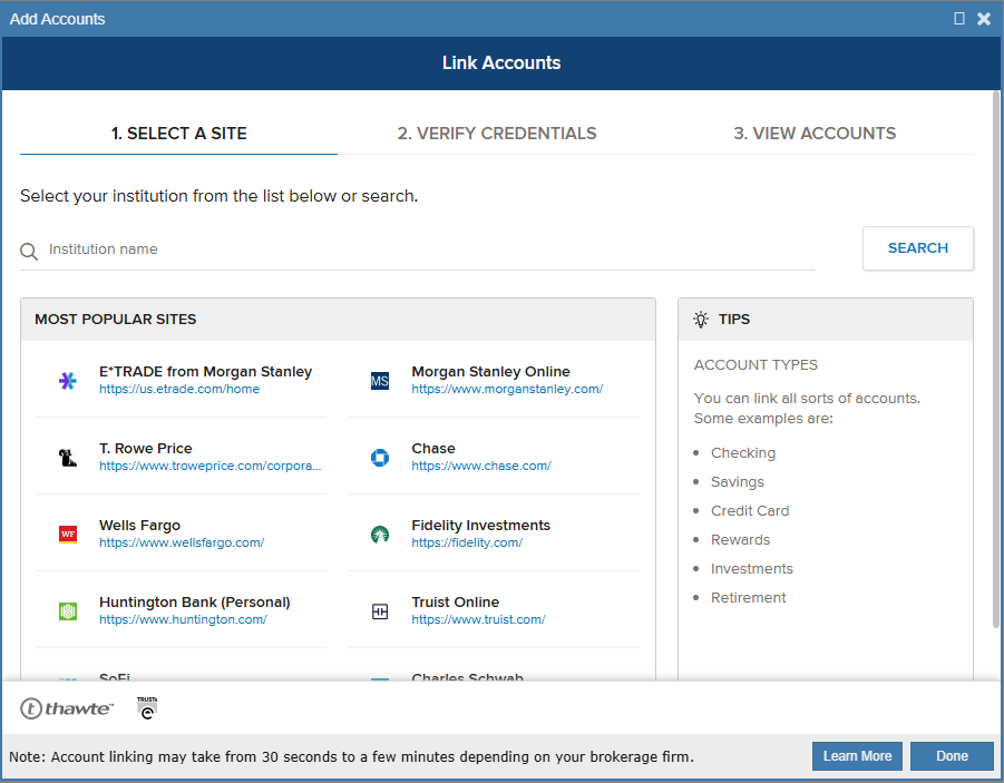 Stock Rover leverages Yodlee, a secure financial data aggregator, to link your brokerage accounts directly to Stock Rover. This integration provides three distinct advantages: