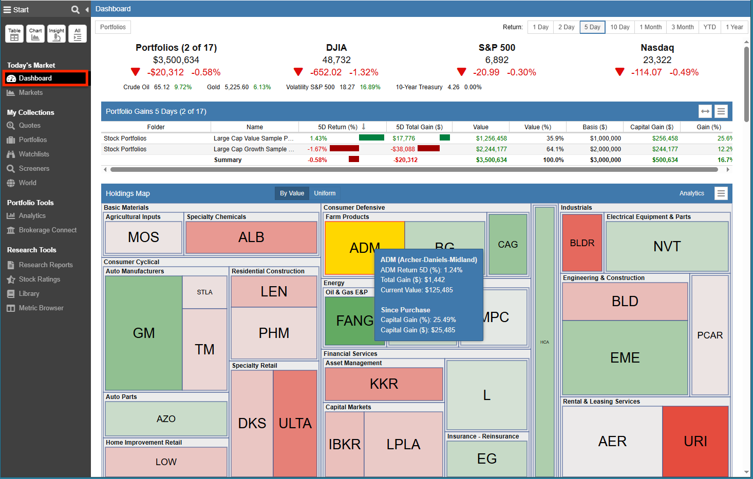 The biggest hurdle to portfolio tracking is manual data entry. It is tedious and always out of date. Stock Rover solves this through Linked Portfolios (via Brokerage Connect).