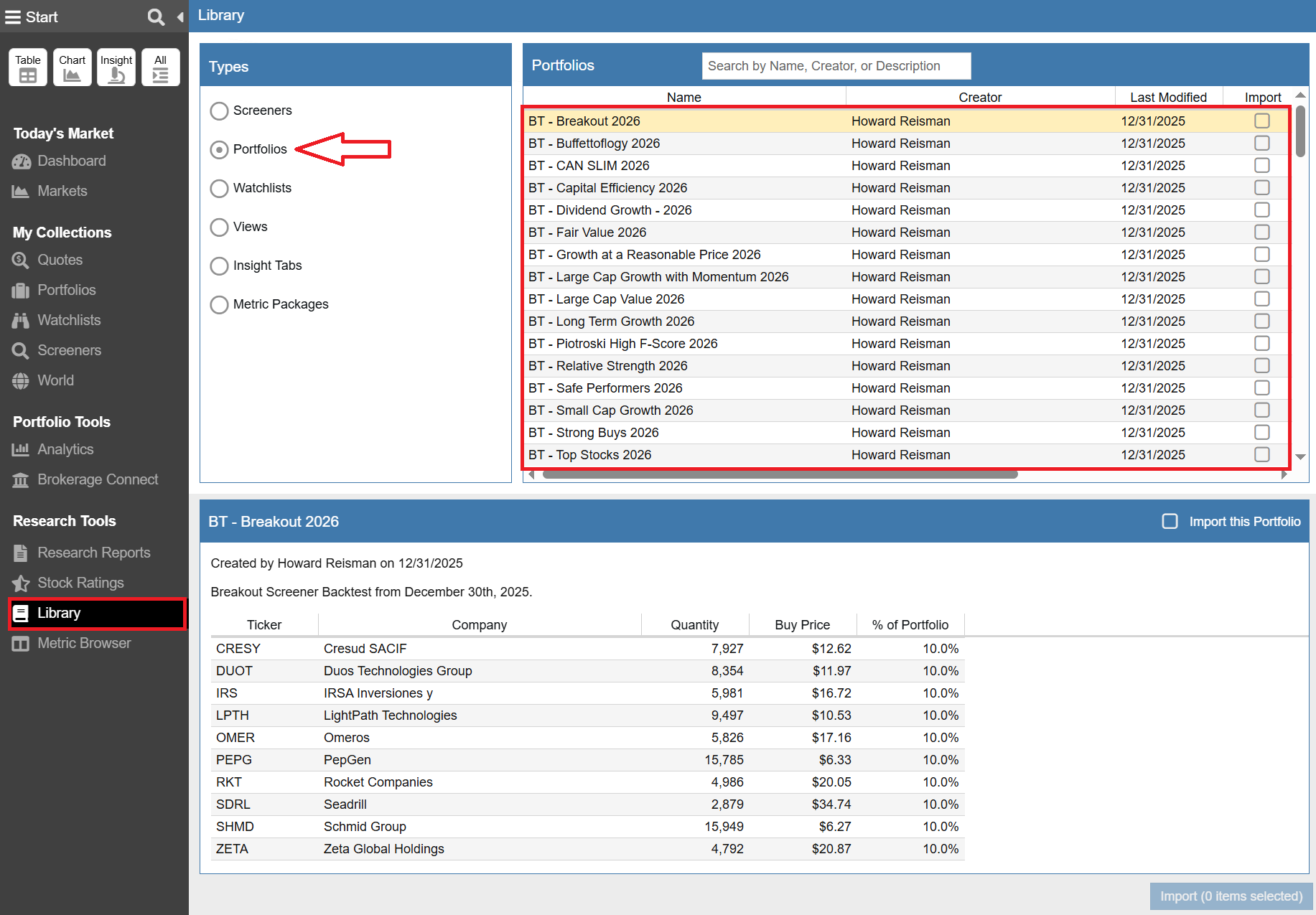 The new portfolios that have been added to the Stock Rover Investors Library can give you a great head start to find some interesting investment candidates in 2026, as each of the portfolios is based on a popular screener in Stock Rover.