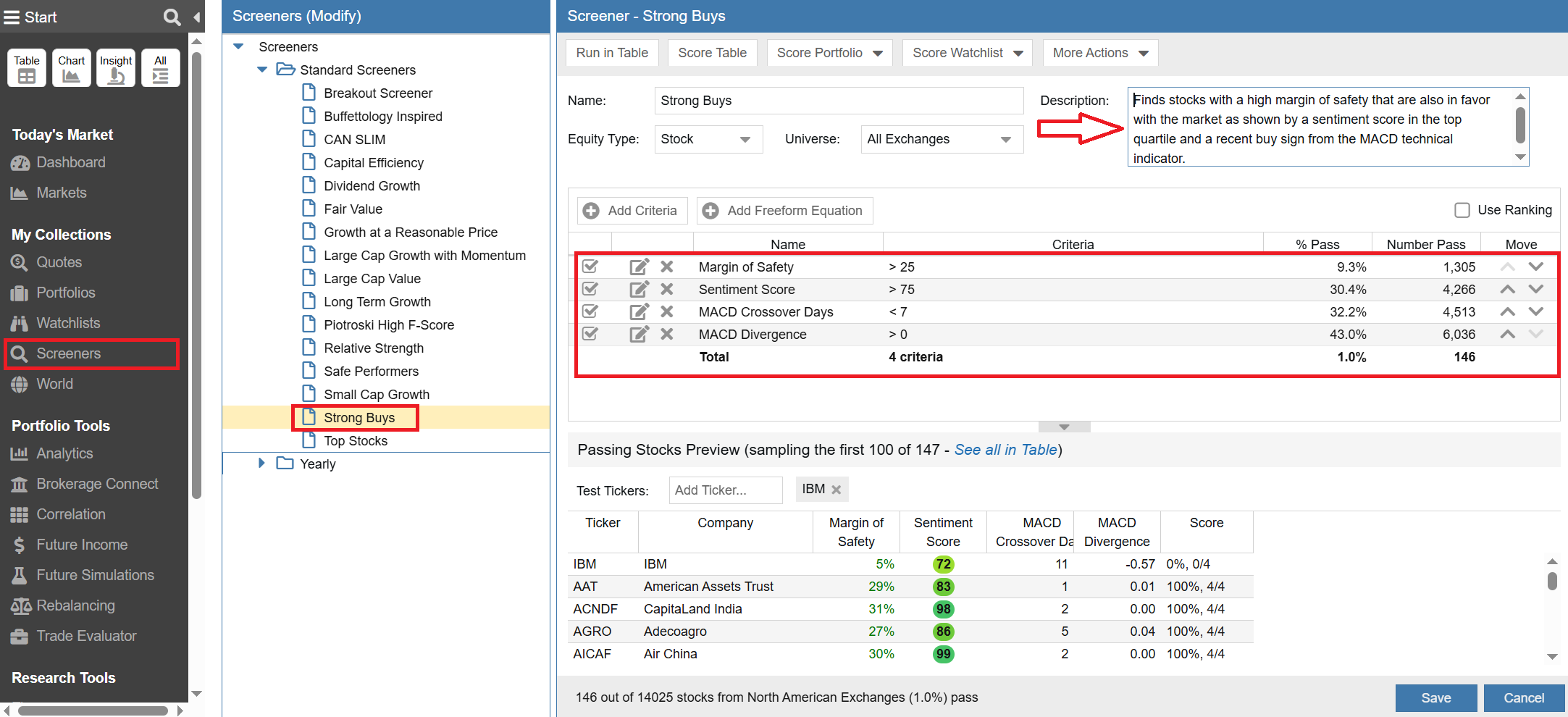 By using the Stock Rover Screener Manager, the detailed descriptions for the screeners can be found in the description within the screener itself. And the screener criteria can be viewed from within the Screener Manager when the screener is selected.